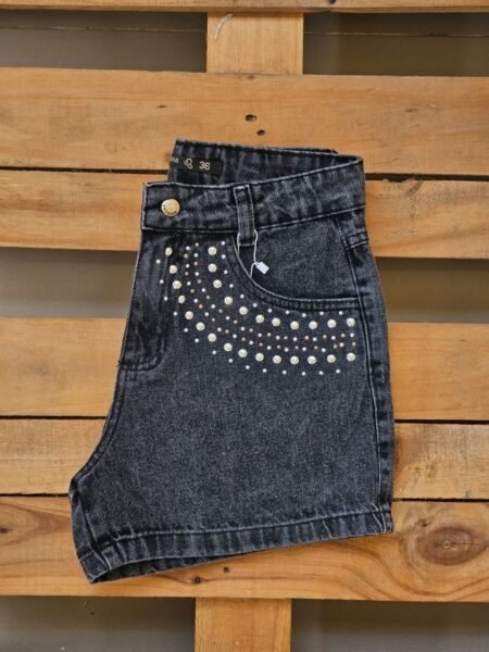 short Jeans Black Com Aplicação