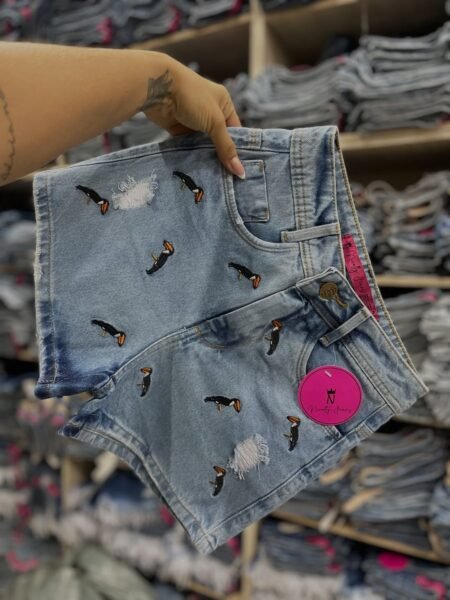 Short Jeans Bordado Mini-Tucano