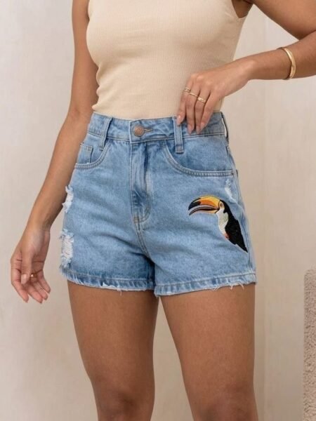 Short Jeans Bordado Mini-Tucano